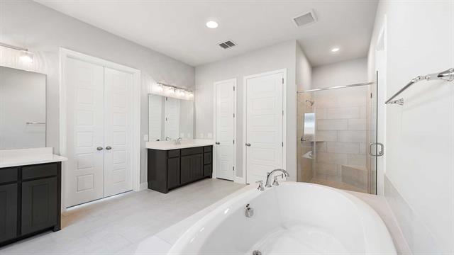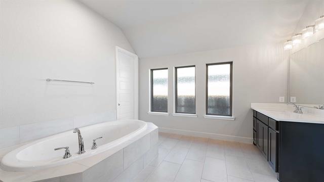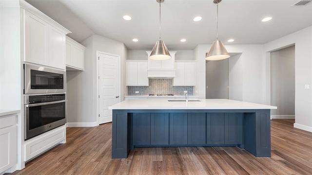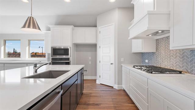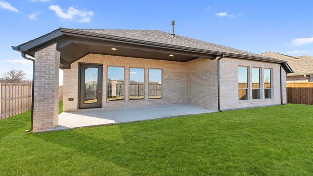 MOVE IN READY! Step off the front porch into an extended entry with soaring 12-foot ceilings, where a private home office sits just off to the side. The entryway flows into the open-concept kitchen, dining area, and family room. The kitchen boasts a corner walk-in pantry, generous counter space, a 5-burner gas cooktop, and an island with built-in seating. The dining area seamlessly connects to the family room, highlighted by a wall of windows, a wood mantel fireplace, and access to the covered backyard patio. The primary suite with a double-door entry leading to the bath featuring dual vanities, a garden tub, a separate glass-enclosed shower, and two spacious walk-in closets. A private guest suite with its own bath enhances this one-story home’s thoughtful layout. Completing the design are a mud room and a two-car garage.