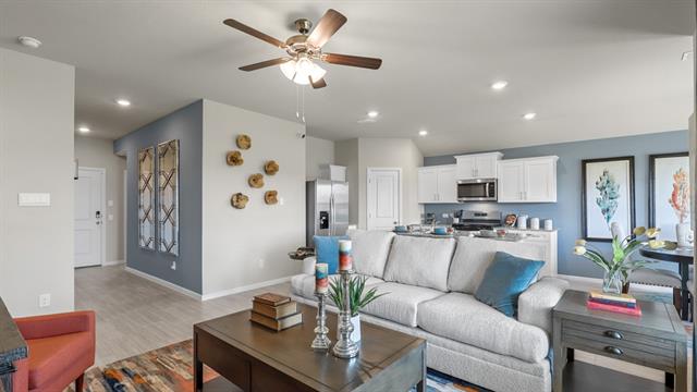Beautiful new home built by D.R. Horton in the new community of Longhorn Estates located in the heart of South Fort Worth and Crowley ISD! Fabulous single-story Bellevue Floorplan–Elevation C, features 3 bedrooms, 2 bathrooms, and a 2-car garage, with an estimated Winter completion. Designed for modern living, this home offers an open-concept layout connecting the family room, breakfast nook, and chef-inspired kitchen, complete with a large seating island, granite countertops, stainless steel appliances, a gas range, built-in microwave, and a corner pantry. The primary bedroom includes a walk-in closet and a bathroom with a wide quartz-topped vanity and a 5-foot oversized shower. Ceramic tile flooring flows through the entry, hallways, and wet areas, and the home includes a Home Is Connected® Smart Home Technology package. Step outside to enjoy the covered back patio and a fully fenced backyard with sod and a sprinkler system-perfect for relaxing or entertaining. Additional features include a gas tankless water heater for energy efficiency. Longhorn Estates is more than a neighborhood, it's a community designed with your future in mind.