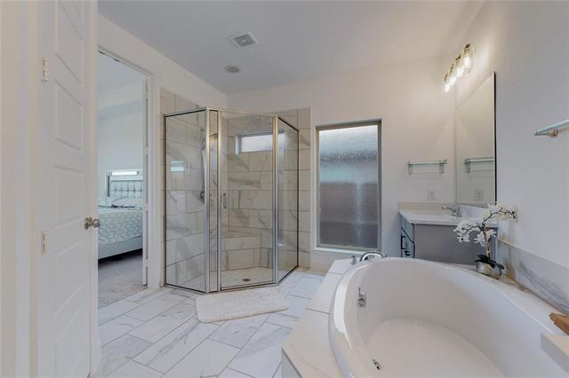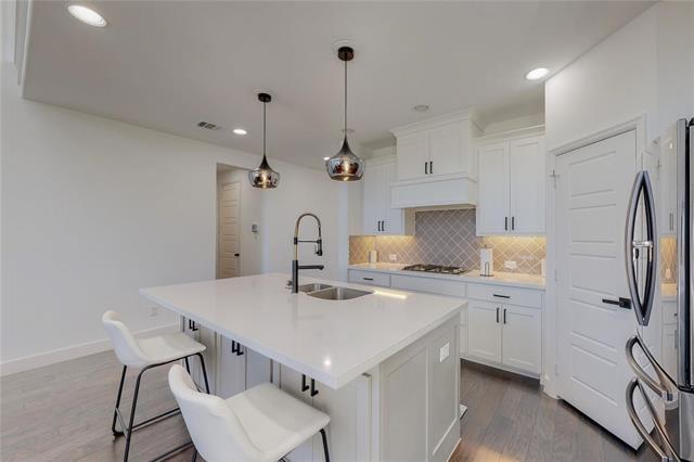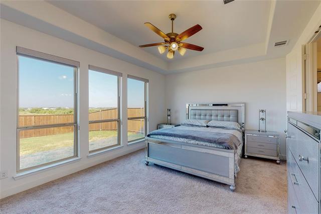 PERRY HOMES. Beautiful 4 bedroom 3 bath home, office with french doors and 11-foot ceiling set at two-story entry. Open kitchen features deep walk-in pantry and large island. Dining area opens to two-story family room with wall of windows and a wood mantel fireplace. First-floor primary suite includes bedroom with 10-foot tray ceiling. Double doors lead to primary bath with dual vanity, garden tub, separate glass-enclosed shower and large walk-in closet. An additional bedroom is downstairs. Two secondary bedrooms and game room with 10-foot tray ceiling are upstairs. Covered backyard patio. You will love the neighborhood amenities as well as the local restaurants and shopping.