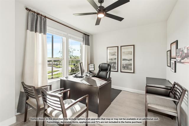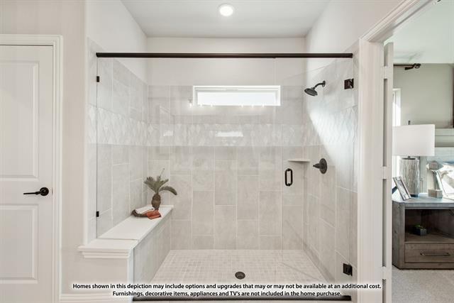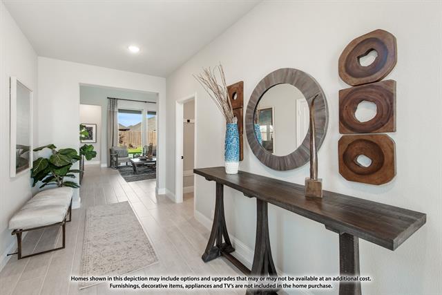 NEW! NEVER LIVED IN. Ready April 2026. The Violet III by Bloomfield Homes presents a thoughtfully planned two-story layout with 4 bedrooms, 3.5 baths, and a 2.5 car garage, positioned on a desirable corner homesite in the Devonshire community. A fully bricked exterior with full rain gutters and a cedar garage door sets a polished first impression before entering the home. Tall ceilings and wood-look tile flooring extend through the main living areas, creating a bright and open feel throughout the first floor. The family room is centered around a stone fireplace extending floor to ceiling, adding texture and warmth while remaining open to the kitchen and dining spaces. The deluxe kitchen is equipped with quartz countertops, built-in stainless steel appliances, pot and pan drawers, and a functional layout designed to support both everyday use and entertaining. A study with glass doors near the front of the home provides a quiet, defined workspace or flexible room option. The primary suite is privately located on the first floor and features an enlarged shower, a vanity with dual sinks, and a walk-in closet. Upstairs, 3 secondary bedrooms are arranged with access to 2 full baths, offering comfortable separation while keeping shared spaces convenient and connected. Within Devonshire, homeowners enjoy access to pools, splash features, and miles of hike and bike trails in a thoughtfully planned Forney ISD community with quick connections to I-80 and Downtown Dallas. Visit the Bloomfield Homes model in Devonshire to learn more about the Violet III and explore this corner-lot home.