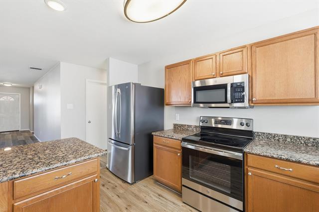The open kitchen is both functional and inviting, showcasing granite countertops, newer appliances, generous cabinetry, and an oversized pantry, all seamlessly connected to the living and dining spaces—perfect for hosting or relaxing at home.