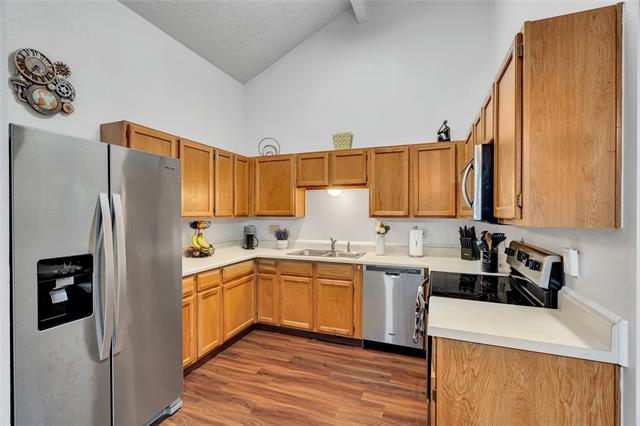 LOW FHA mortgage rate available! Half Duplex beautifully updated throughout. Great open floorplan with soaring ceiling, wood burning fireplace, fully equipped kitchen with stainless steel appliances. The master suite is spacious and offers ample closet space and updated master bath. Flex room that can used as living, dining, fitness or office space. Large corner lot with spacious backyard, patio, storage and recently installed oversized carport. Interior upgrades include luxury vinyl plank flooring, fresh paint and interior water valves. Exterior upgrades includes HVAC system, energy efficient windows, roof, gutters and carport. Easy access to major freeways, shopping, dining and community schools.