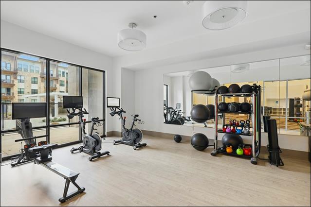 Residents enjoy the security of a controlled-access building with multiple elevators and resort-caliber amenities including a state-of-the-art fitness center, yoga studio, resident lounges, game room, kitchen and bar, business center, sparkling pool, dog park, bike storage, and direct access to scenic jogging and biking trails.