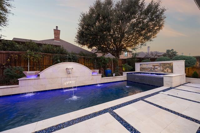 This stunning former Highland Homes model is perfectly positioned on a corner lot in the prestigious lake and golf community of The Tribute. Just a short walk from Prestwick Elementary and Lowell Strike Middle School, this home offers a blend of luxury, convenience, and lifestyle. Designed to impress, this former model is brimming with high-end upgrades. The third-car garage is complemented by epoxy flooring, while the expansive game room easily accommodates a pool table, card table, and bar—a true entertainer's dream! The media room features surround sound, and the private office is complete with a cozy gas fireplace. Step outside to your personal oasis: an exquisite Italian white marble pool and spa adorned with a Versace-inspired design. Surrounded by lush, mature landscaping, this outdoor retreat invites relaxation and indulgence. Inside, every detail has been carefully curated. Custom built-ins, plantation shutters, and elegant wood detailing create a sophisticated yet welcoming atmosphere. The kitchen features a commercial-grade stainless steel cooktop, double ovens, custom cabinetry, natural stone countertops, and herringbone backsplash details. A sun-drenched breakfast nook seamlessly connects the indoors to the serene outdoor living spaces. The main-level primary suite is a private sanctuary, with large windows offering tranquil views of the pool. The spa-like ensuite bath includes a jetted tub and a walk-in closet with custom storage. Outside your door, The Tribute community elevates everyday living. Enjoy resort-style pools, a splash park, playgrounds, dog parks, fishing ponds, a kayak launch, and neighborhood events. Golf enthusiasts will appreciate the two award-winning courses, complete with bars and restaurants. Plus, a planned marina promises beach volleyball courts and a waterfront event space, enhancing the vibrant, active lifestyle this community is known for.