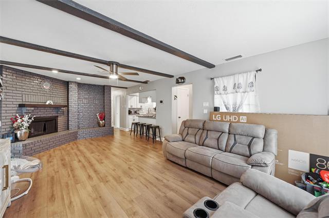 Welcome to your perfect family home! This charming 4-bedroom, 2-bath property boasts a thoughtful split floorplan for maximum privacy. The cozy living area features a warm fireplace, making it the perfect spot for relaxing evenings. A spacious, eat-in kitchen flows into the dining area, creating a warm, inviting atmosphere. The generously sized primary bedroom includes. Situated on a quiet street, this home offers a wonderful backyard, creating an ideal for relaxation.