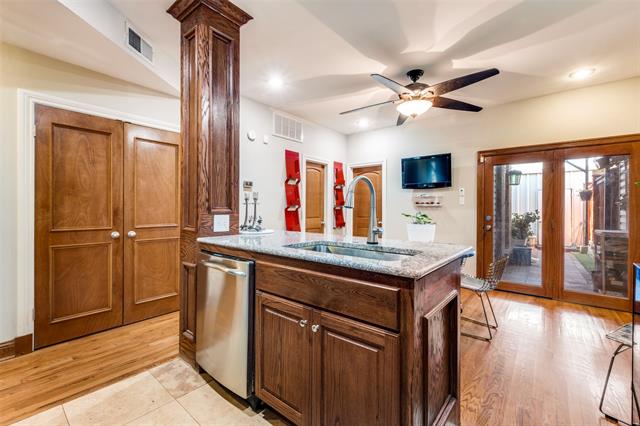 Welcome to this beautifully appointed 3-bedroom, 3-bathroom townhome located in the heart of Dallas, just minutes from Baylor Hospital, downtown, and major thoroughfares. Offering 1,549 sq ft of thoughtfully designed living space, this home combines warm character with modern convenience in an unbeatable location. Step inside to find newly refinished hardwood floors, exposed wood beams, and a wood-burning fireplace that create a cozy, inviting atmosphere in the living room. The eat-in kitchen features granite countertops, ample cabinet space, and a functional layout perfect for both everyday living and entertaining. Each bedroom is generously sized with its own full ensuite bathroom—ideal for families, roommates, or guests. The home also boasts two private outdoor living spaces: a covered patio on the ground level and an upstairs deck accessed from both the primary and 3rd bedroom. The 200 sf deck is constructed with durable trex and has stunning views of the Dallas skyline—perfect for morning coffee or evening relaxation. Gated entry to access your private enclosed two-car garage equipped with electric charging station, built in shelving and ample storage space. Whether you’re exploring downtown dining and nightlife, or commuting via nearby highways, this home offers unmatched accessibility. Don’t miss this rare opportunity to own a move-in ready townhome with character, comfort, and city views!