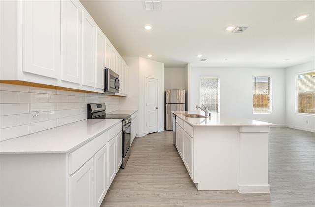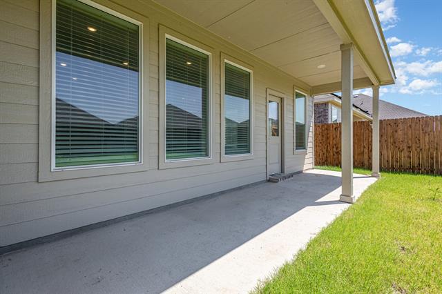 Step into this 3 bedroom, 2 full bathroom, single-story stunner in a newly developed subdivision, just minutes from Lake Lavon. The open floor plan connects the kitchen, breakfast room, and living room, leading to a covered patio for year-round outdoor relaxation. The owner's suite boasts tall ceilings, a luxurious bathroom with a walk-in shower, and a spacious walk-in closet with two sinks. Two additional bedrooms share a bathroom with a linen closet. A two-car garage and a full-size laundry room with shelves add convenience. The kitchen, a chef's dream, features an island, pantry, microwave, stove, and ample cabinets and counter space. Washer, dryer and refigerator to convey with sale of property. Plus, the premium upgrade of stone on the front adds to the curb appeal. fantastic community features in the Bridgewater subdivision, including a community pool, clubhouse, jogging and bike paths, a park, and a playground. It's a lifestyle upgrade waiting for you.