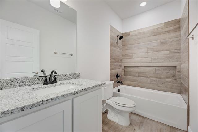 Gather around the striking stone-to-mantle fireplace in the family room, where durable wood-look tile floors run through all common areas for style and easy care. Enjoy the convenience of a 3-car garage providing ample parking and storage, and relax or entertain in the large backyard with room for a garden or play area.