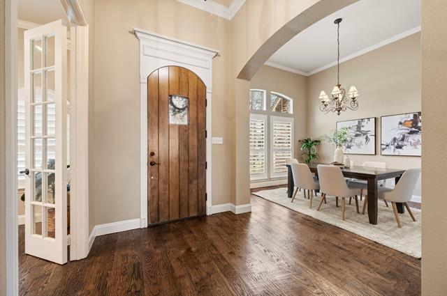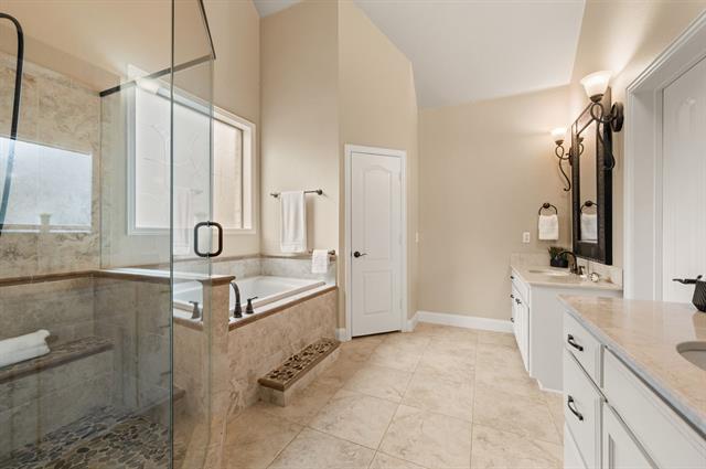 Tucked away in one of Fort Worth’s hidden-gem, guarded communities, this inviting home offers a thoughtful layout, beautiful finishes, and a peaceful setting. The open floor plan is enhanced by warm wood flooring and multiple living and dining spaces designed for both everyday comfort and entertaining. A private study with French doors and a cozy fireplace provides the perfect work-from-home or flex space, while the formal dining room and sunny breakfast area offer options for any occasion. The kitchen is a true standout with granite countertops, abundant cabinetry, a breakfast bar, and a large pantry, ideal for cooking, hosting, and gathering. The split-bedroom layout ensures privacy, with the spacious primary suite overlooking the lush backyard and featuring an updated bath with separate shower and walk-in closet. A second living area offers endless possibilities as a game room, media space, or casual hangout. Step outside to a serene backyard retreat with a covered patio and mature landscaping, perfect for relaxing or entertaining. Home has a built in Tesla Charger. Home is within a guarded, gated community, this home blends comfort, functionality, and a tranquil lifestyle in a sought-after setting.