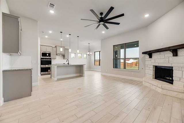 Discover 1,994 sq ft of thoughtfully designed living space featuring 3 bedrooms, 2 baths, and a private study—perfect for a home office or flex room. The open-concept kitchen impresses with upgraded quartz countertops, a large island highlighted by stylish pendant lights, double ovens, a butler’s pantry, and wood-look tile floors that flow seamlessly into the main living areas.