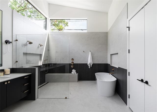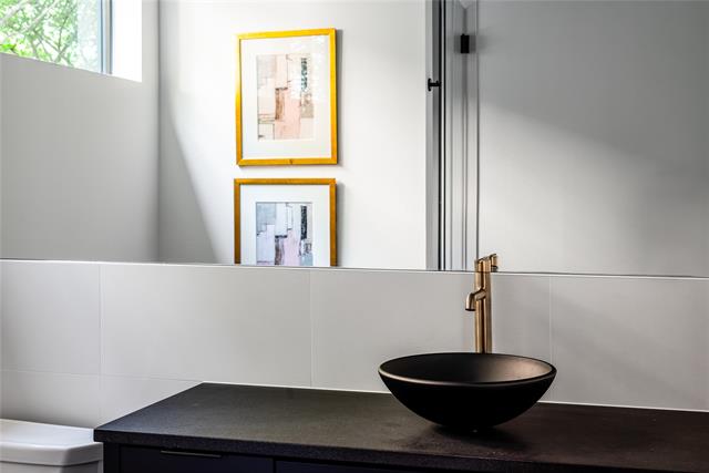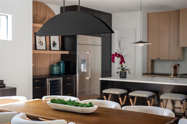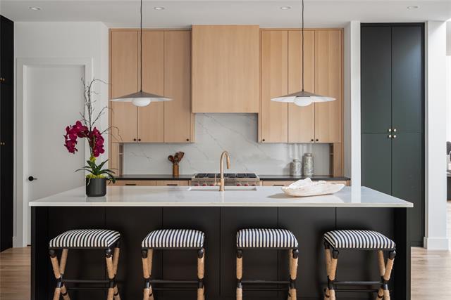 The gourmet kitchen is a showpiece, featuring hand-built cabinetry, a huge quartz island, WOLF® dual fuel range, 48-inch built-in Café® refrigerator, dry bar with LED-lit floating shelves and wine cooler, plus a walk-in pantry with generous storage and garage pass-through. Downstairs, the luxurious primary suite stuns with a soaring vaulted ceiling, sliding glass doors leading to backyard, and spa-like bathroom complete with floating vanity, a vessel tub, oversized rainfall shower, and a custom walk-in closet. Also on the main level: a versatile guest suite or private office with ensuite bath and a large laundry room. Upstairs, a game room with wet bar opens to a spacious covered veranda, while three additional bedrooms each feature ensuite baths and walk-in closets. Built with performance and peace of mind in mind, this home includes a Control4® Smart Home system, CAT-6E pre-wiring, foam insulation, dual tankless water heaters, piered-slab foundation, and a Maverick® 1-2-10 Builder’s Warranty. A masterful blend of design, technology, and location—6906 Clayton Ave delivers refined living in one of Dallas’ most desirable neighborhoods.