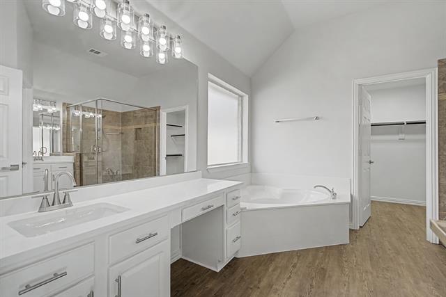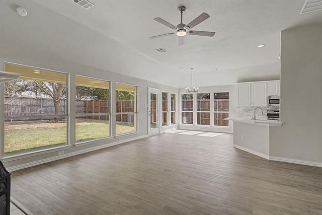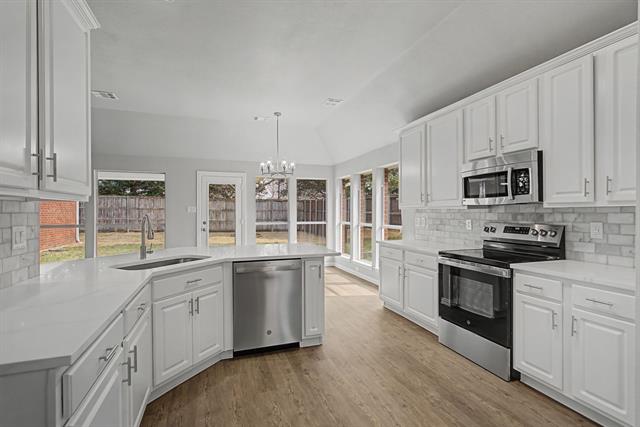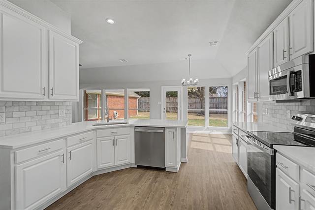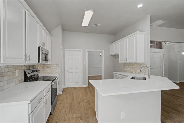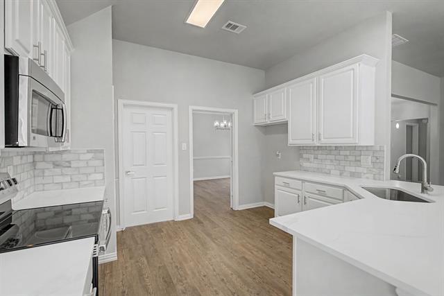 All updated and move in ready. Kitchen has new stainless steel appliances, white cabinets, white quartz countertops, marble backsplash. All wood like flooring throughout, no carpet. All new lights, fixtures, hardware throughout. Painted inside and out. New Roof. Lots of new windows. Large, covered patio.