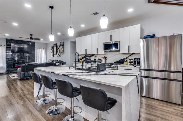 Welcome to this beautifully updated 4-bedroom, 3-bath home offering space, style, and functionality throughout. With a roof that is just two years old, major exterior maintenance has already been taken care of. Inside, you’ll find an open-concept living area with modern finishes, upgraded flooring, and a statement fireplace that anchors the space. The kitchen features sleek cabinetry, generous counter space, and island seating that flows seamlessly into the dining and living areas, making it ideal for both everyday living and entertaining. The primary suite serves as a private retreat with a spa-inspired bathroom that includes a soaking tub, oversized walk-in shower, and elevated finishes. Three additional bedrooms provide flexibility for guests, a home office, or growing needs. The spacious backyard offers room to personalize, whether you envision outdoor gatherings, play space, or future enhancements. Whether you’re a first-time homebuyer ready to step into ownership, a move-up buyer looking for more space and updates, or an investor seeking a well-maintained property with strong appeal, this home presents a solid opportunity.