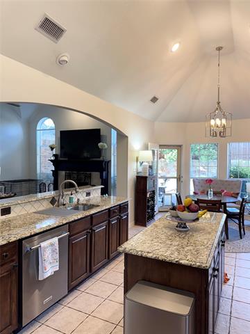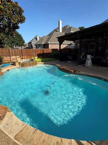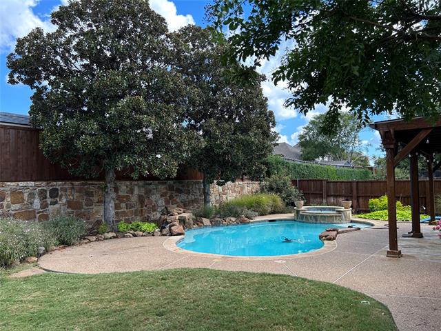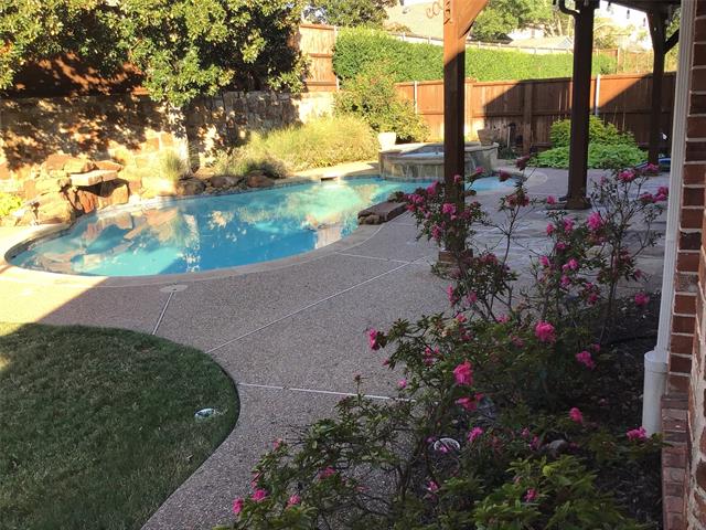 WELCOME TO STONEBRIDGE RANCH. This lovely one story, built by Highland Homes Is located on a cul de sac street, walking distance to two parks (including the Stonebridge Aquatic Center and pickleball courts). Upon entry to the wide foyer there is a private office to the right with French doors and plenty of light, plus 2 bedrooms and a full bath to the left. As you progress through the home the 12 foot ceilings give you the feeling of a much larger home. The living room boasts a gas fireplace with custom mantle and raised marble hearth. The kitchen with island and corner pantry offer tons of storage and extensive counter space for the most advanced chefs. Enjoy your morning beverage listening to the water features in the pool. The covered patio is perfect for outdoor dining or hosting parties with easy access back and forth into the kitchen. The owners suite with sitting area viewing the pool and yard is located at rear of home. A 4th bedroom plus full bath off back hallway.