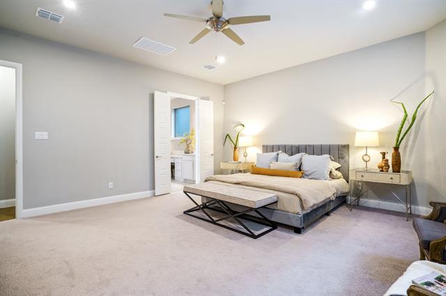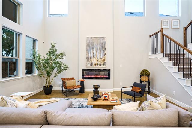 Stunning 4-bedroom, 3-bath Trophy Signature Home located in the highly sought-after Allen ISD, offering a thoughtfully designed floor plan and exceptional upgrades throughout. The main level features a private primary suite with a spa-inspired bath, dual vanities, oversized shower, soaking tub, and walk-in closet, along with an additional downstairs bedroom and full bath—ideal for guests or multigenerational living. A dedicated downstairs office provides the perfect work-from-home or study space. The open-concept living, dining, and kitchen areas are filled with abundant natural light, thanks to floor to ceiling windows that create a bright and welcoming atmosphere. The kitchen is designed for both function and style, offering white shaker style cabinetry, premium countertops, stainless steel appliances, and seamless flow into the main living area. Electric shades throughout the home add modern convenience and a sleek, polished feel with a touch of a button. Upstairs, you’ll find two generously sized bedrooms connected by a Jack-and-Jill bath, along with a spacious game room and a separate media room—perfect for entertaining, movie nights, or relaxing with family and friends. Step outside to your private backyard retreat featuring a sparkling pool and a large covered patio ideal for outdoor living, dining, and entertaining year-round. An electric awning off the primary bedroom window extends over the salt water pool, providing additional shade and comfort during warm Texas days. The epoxy-coated garage floor and Tesla charger add both style and efficiency to this well-appointed home. An added bonus is that this home is located in a welcoming community with a pool, playground, park, scenic trails, and a clubhouse for gatherings. Walking distance to top-rated schools and just minutes from shopping, dining, and Hwy 121. This home is the perfect blend of style, comfort, and convenience- come see it for yourself!