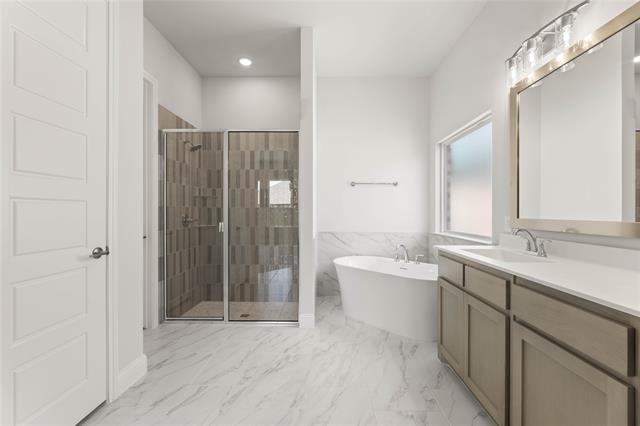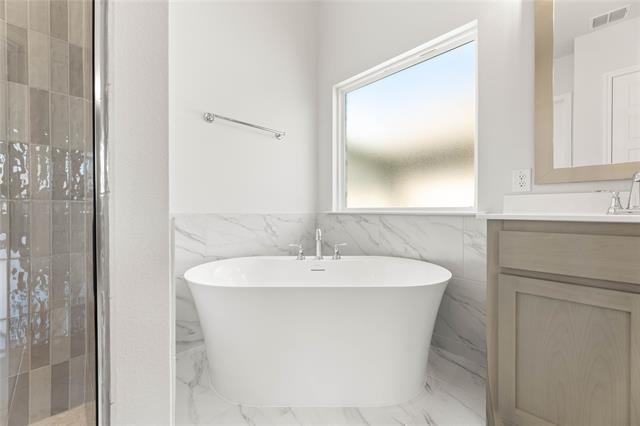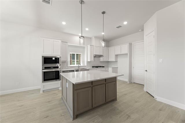 MLS# 21004809 - Built by Sandlin Homes - Ready Now! ~ Our Colby plan with 3 bedrooms, 2 bathrooms, a study, open living area, oven tower in the kitchen, fireplace in living room, freestanding bathtub and a large extended covered patio. This home is designed with 3cm quartz countertops, stained cabinets and white cabinets at the kitchen perimeter and oven tower, black trim windows, upgraded carpet, tile and laminate flooring, and a tiled fireplace up to the ceiling.