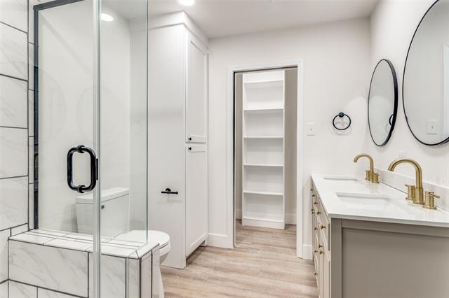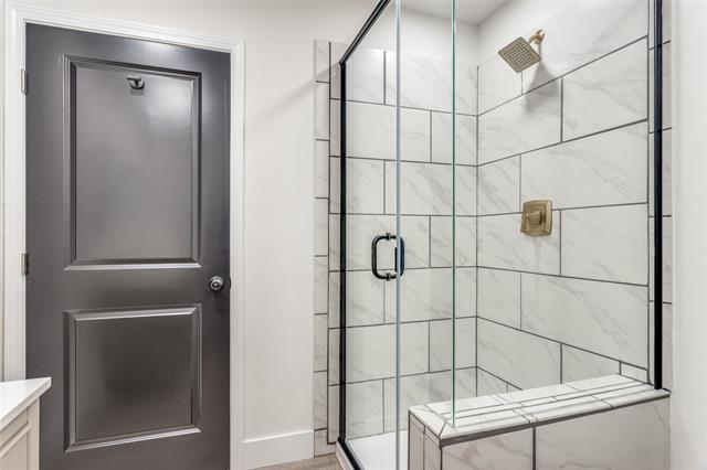 All three bedrooms are generously sized, while both full bathrooms feature double vanities and updated fixtures for a spa-like feel.