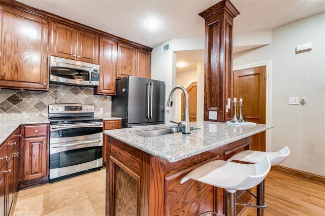 Welcome to this beautifully appointed 3-bedroom, 3-bathroom townhome located in the heart of Dallas, just minutes from Baylor Hospital, downtown, and major thoroughfares. Offering 1,549 sq ft of thoughtfully designed living space, this home combines warm character with modern convenience in an unbeatable location. Step inside to find newly refinished hardwood floors, exposed wood beams, and a wood-burning fireplace that create a cozy, inviting atmosphere in the living room. The eat-in kitchen features granite countertops, ample cabinet space, and a functional layout perfect for both everyday living and entertaining. Each bedroom is generously sized with its own full ensuite bathroom—ideal for families, roommates, or guests. The home also boasts two private outdoor living spaces: a covered patio on the ground level and an upstairs deck accessed from both the primary and 3rd bedroom. The 200 sf deck is constructed with durable trex and has stunning views of the Dallas skyline—perfect for morning coffee or evening relaxation. Gated entry to access your private enclosed two-car garage equipped with electric charging station, built in shelving and ample storage space. Whether you’re exploring downtown dining and nightlife, or commuting via nearby highways, this home offers unmatched accessibility. Don’t miss this rare opportunity to own a move-in ready townhome with character, comfort, and city views!