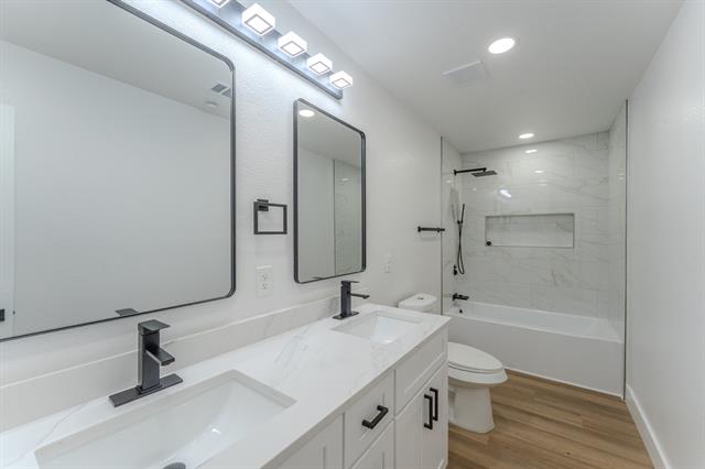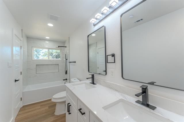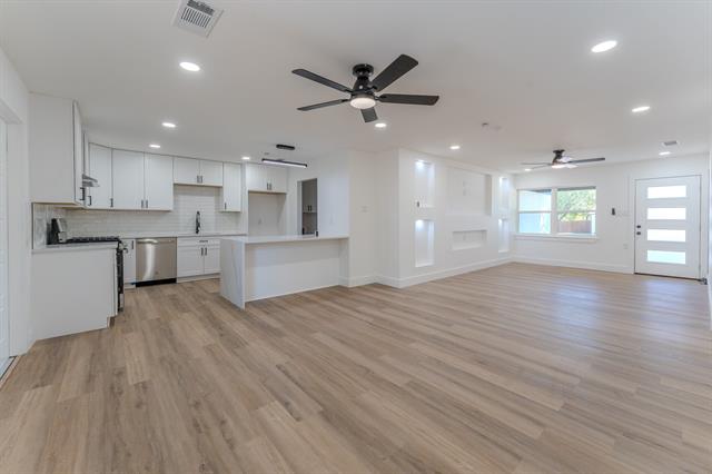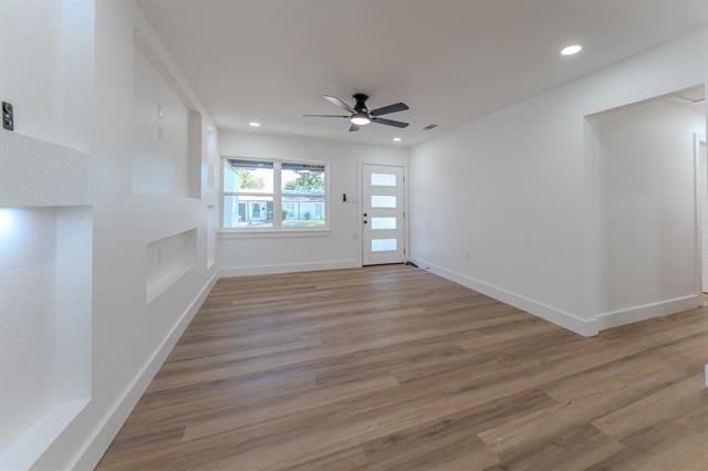 This beautifully remodeled 3-bedroom, 2-bathroom home offers modern style and comfort throughout. Step inside to find brand new luxury vinyl plank flooring, new quartz countertops, and an open-concept kitchen featuring a stylish peninsula with elegant black fixtures. The bathrooms have been completely updated, while the living room includes a custom-built entertainment center — complete with a complimentary TV giveaway for the new homeowner.